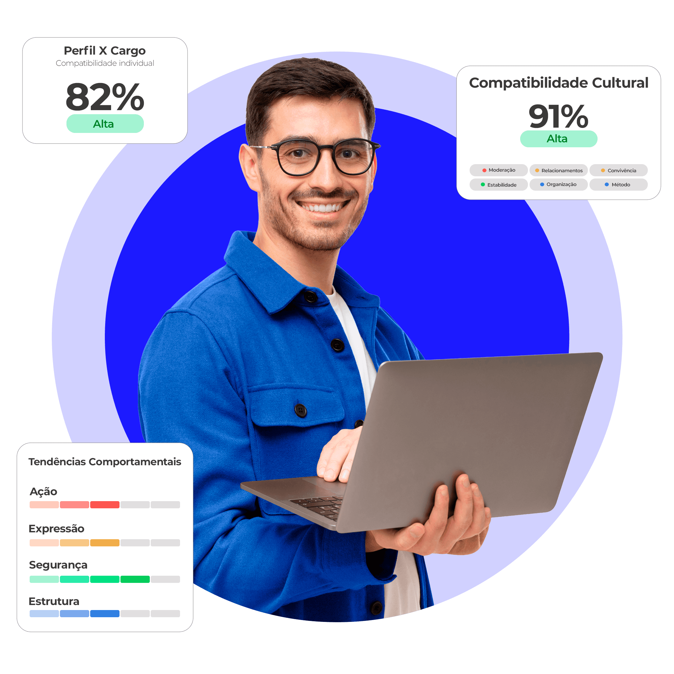 Avalie a compatibilidade do colaborador com a cultura da empresa, considerando seu perfil comportamental, valores e preferências de trabalho. Tome decisões mais justas e estratégicas, entendendo se o nível de aderência (ou desalinhamento) está ligado ao contexto organizacional ou à forma como o colaborador se relaciona com o ambiente em que está inserido.